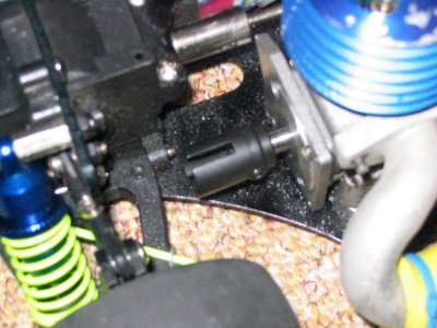 Also habe ich mir folgendes überlegt (wobei schon andere vor mir die gleiche Idee hatten): man schraube den Seilzugstarter ab, entferne den Sechskantfreilauf auf dem er sitzt, undmontiere dann einen Flansch für einen Antriebsknochen auf der Starterwelle. Das geht ganz einfach, weil die Welle genau sechs Millimeter durchmesser hat. Passende Flansche mit 6mm Bohrung werden in diversen 1:8er Fahrzeugen verbaut, sind also leicht zu bekommen. Dann braucht's nur noch die Passende Antriebswelle, einen Knochen also. Auch den gibt's im 1.8er Zubehör und wenn man auf einer Seite Kugel und Stift absäbelt, kann man ihn prima in einen Akkubohrschrauber einspannen. Fertig! Und meiner Meinung nach nicht nur billiger sondern auch besser als das originale Rotostart, weil der Bohrschrauber wesentlich belastbarer ist.