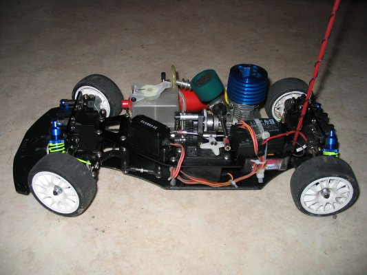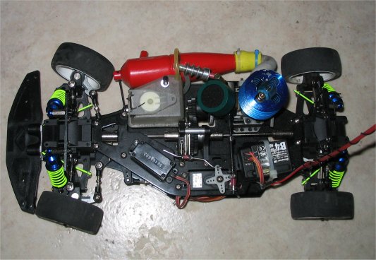 | Wie man oben sehen kann, wurde der Seilzugstarter mittlerweile durch eine Startbox ersetzt, ist also weggefallen. Das Auto dankt es durch ein ausgewogeneres Fahrverhalten wg. der besseren Gewichtsverteilung. | ![]() |